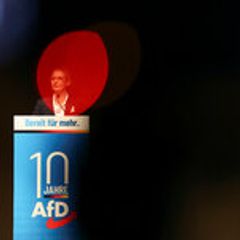 | Alice Weidel, a leader of Alternative for Germany, at the party's 10th anniversary celebration on Monday.... |