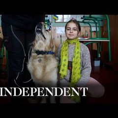 | Parker the golden retriever helps Ukrainian girls deal with trauma |