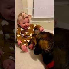 | Baby can't stop giggling as dog pal licks feet #shorts |