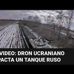 | El momento en que un dron kamikaze ucraniano impacta un tanque ruso |