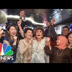| Michelle Yeoh's mother, Janet Yeoh, celebrates at a watch party as her daughter made history, becoming... |