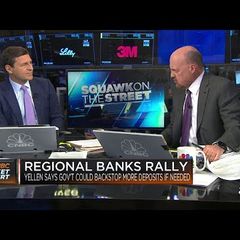 | CNBC's Jim Cramer reports on why the regional banks are performing well before Tuesday's opening bell. |