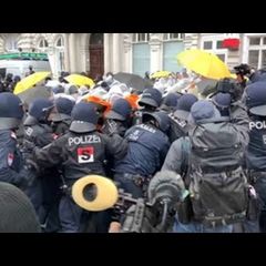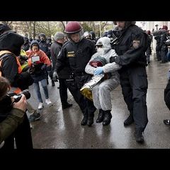 | Police detonated non-lethal dispersion grenades as they fended off thousands of protesters, some armed... |