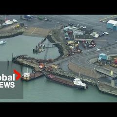 | Aerial footage shows scale of oil leak into southern England harbour |