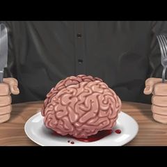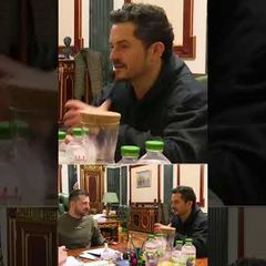 | Ana tries to cut an egg by rolling it on the knife |