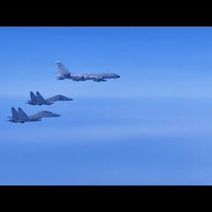 | Chinese fighter jets and warships simulated strikes on Taiwan Sunday as they encircled the island during... |