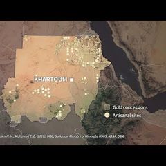 | Animated map of Sudan with a video showing destructions after heavy fighting, in Shambat Khartoum's northern... |