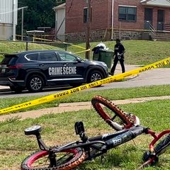 | 2023-07-07T16:44:20ZA police officer passes a child's bicycle after a mass shooting at the scene of a... |