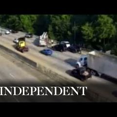 | CCTV footage shows emergency services attending the scene of a car crash involving Ron DeSantis in Tennessee... |