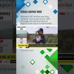 | Watch the moment IDF leaflets fall from the sky during live report from Gaza-Israel... |