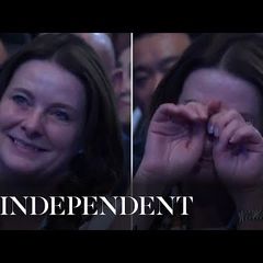 | Gillian Keegan cries during Rishi Sunak's Tory conference speech |
