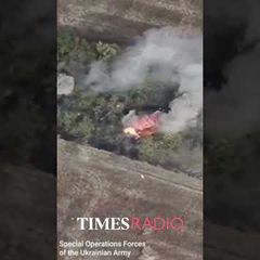| Ukrainian drone footage shows Russian armoured vehicles on fire south of Tokmak, in the Zaporizhzhia... |