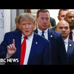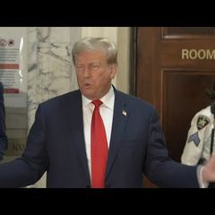 | In remarks outside a New York courtroom to reporters, Donald Trump says his focus is "totally" on running... |