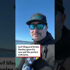 | "Here's my buddy!" Surf lifeguard Drake Stanley made a new friend when a sea lion pup jumped aboard his... |