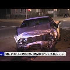 | Person injured after crash involving CTA bus stop |