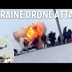 | Dramatic footage shows the moment a suspected Ukrainian drone exploded as it hit one of Vladimir Putin's... |
