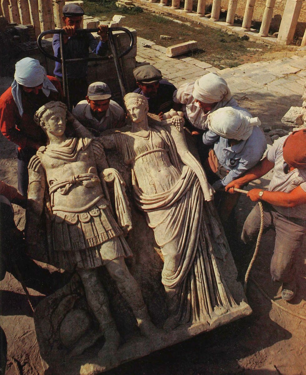 | The discovery of a statue of Nero being crowned by his mother Agrippina, the Sebasteion at Aphrodisias, Türkiye🇹🇷, 1979...The relief represents Agrippina the Younger (Minor) crowning her son Nero wi... |