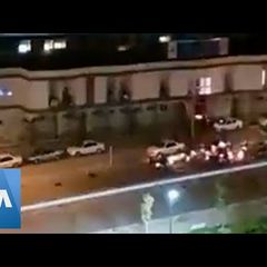 | Reuters news agency - who had a photographer at the scene - reported a man threw petrol bombs attached... |