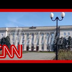 | A Russian flag signifying a checkpoint has been removed from Kherson's main government building, leading... |