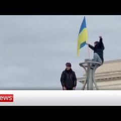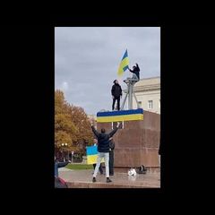 | Images on social media show the Ukraine flag being flown in central Kherson READ MORE : https://www.euronews.com/2022/11/11/ukraines-army-enters-... |