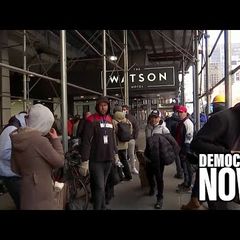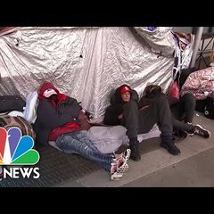 | In New York, asylum seekers are continuing to protest outside a Manhattan hotel where they'd been living... |