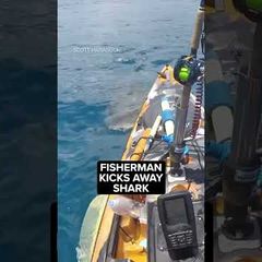 | Fisherman kicks away shark that attacked his kayak |