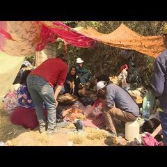 | Moroccan family in Douzrou shelters outside after losing its home and ten members of the family following... |