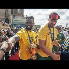 | Тысячи людей вышли на улицы Претории, чтобы приветствовать сборную ЮАР, выигравшую Кубок мира по регби.... |