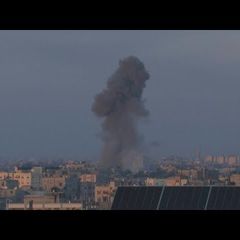 | Plume of smoke rises after an airstrike north of Rafah in the Gaza Strip. Interested in licensing... |
