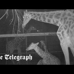 | Conservationists at Chester Zoo are celebrating as the incredible moment a rare Rothschild's giraffe... |