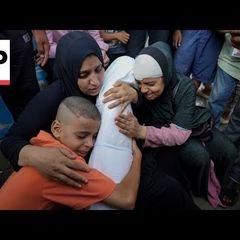 | Inconsolable relatives of children killed in strike in central Gaza mourn for their... |