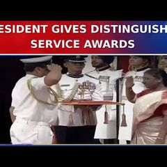 | President Droupadi Murmu of India presented distinguished service awards during a ceremony at the defence... |