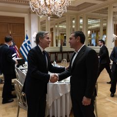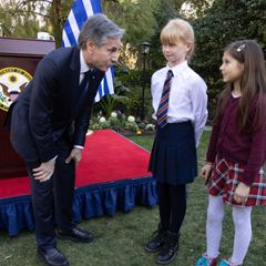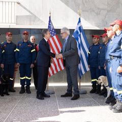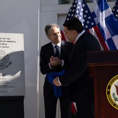| Departing Athens after a productive day of meetings, a ribbon cutting for the Embassy's new construction... |