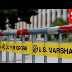 | Images of police forces and a blocked street nearby the E. Barrett Prettyman US Courthouse in Washington... |