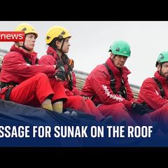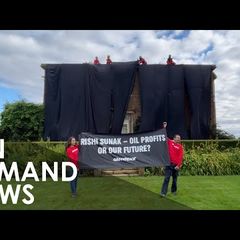 | Greenpeace activist records message from the top of Rishi Sunak's house in North... |