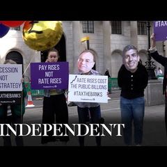 | Protesters gather outside Bank of England as interest rates rise for 14th time in... |