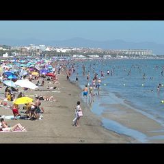 | Turistas se refrescan este jueves en las playas de Valencia para afrontar la cuarta ola de calor de este... |